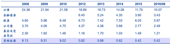 臺灣險資有價證券配置比例變化情況(單位:%)