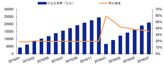 中國保險業保費及其增速情況