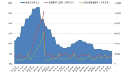 房地產是信托資金的第五大配置領域。2016 年第二季度末房地產信托占比 8.52%,與上季度末的 8.71%相比下降 0.19%。事實上,房地產信托占比自2011年第二季度以來一直在下滑,2012年年底后長期在9%左 右徘徊,這說明該類業務的發展受宏觀經濟下行和國家產業結構調整的影響較為明顯。