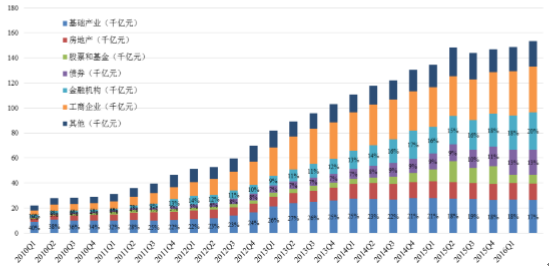截止 2016 年第二季度末,基礎產業是資金信托的第四大配置領域,投 資規模為 2.65 萬億元,占比為 17.31%,所占比重進一步下降(一季度 占比為18.02%)。投向基礎產業的信托資金占比自2010年起逐年下降, 僅在 2013 年第一、第二季度有所反彈。基礎產業信托增長乏力更多歸 因于經濟結構調整和相關政策的出臺。這同時也預示著信托行業的增 長推力正逐漸從傳統行業向其他領域過渡。