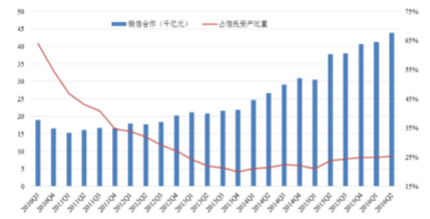 目前信托公司的特色業務主要分為:銀信合作、政信合作、私募基金 合作、PE 業務、房地產及 QDII 業務,其中銀信、政信、房地產業務憑 借較高的業務占比,號稱信托業三駕馬車。截止 2016 年第二季度末, 在以上六類業務中,銀信合作占比繼續保持上升,但政信合作占比、 私募基金合作、PE 投資信托、基金化房地產信托占比和 QDII 業務占 比下降。其中,PE、基金化房地產信托和 QDII 規模較小,三者所占 比重之和不足 1%。六類特色業務中,銀信合作的規模最大。截止 2016 年第二季度末,該類業務規模為 4.39 萬億,占信托資金總規模的 25.38%,較上季度上升 0.49%。銀信業務從 2010 年開始占比大幅下降,到 2013 年底觸底反 彈,但增幅放緩。 六類特色業務中占比第二的是政信合作業務,2016 年第二季度末該類 業務占比 7.95%,較上一季度下降 0.76%。受到宏觀經濟下行和相關政 策影響,加上信托資本成本高企和政府平臺項目周期較長,因此政信 合作占比呈現下降的發展趨勢,這與投向基礎產業領域的資金占比持 續下降相吻合。