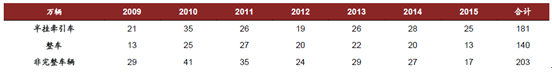 2006-2015年中國重卡保有量數據
