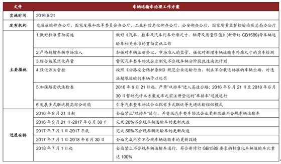 8 月18 日,交通運輸部、工業和信息化部、公安部、工商總局、質檢總局五部門聯合發布了《關于進一步做好貨車非法改裝和超限超載治理工作的意見》、《車輛運輸車治理工作方案》及一系列后續政策,旨在加強對貨車超限超載與非法改裝的整治,推進汽車整車物流行業健康發展。