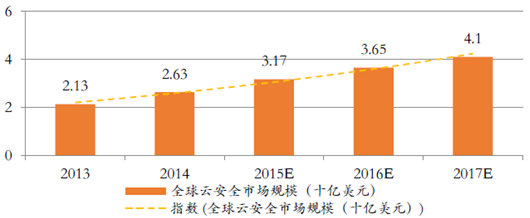 傳統安全廠商布局云安全有三條路徑:一是面向公有云提供商,提供針對公有云的安全保障;二是面向私有云提供商,提供針對云和企業安全的整體解決方案,將安全產品集成在私有云中提供給客戶;三是面向中小企業,提供SECaaS(安全即服務),即將安全軟件部署在公有云上,通過云平臺向企業提供安全服務。根據Gartner 數據顯示,云安全市場規模2016 年將達到36.5 億美元,同比增長15%,云安全的發展將受益于云計算市場的快速增長。