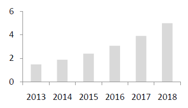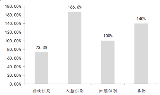 幾種生物識別模式(計算機視覺領域)近5年保持高速增長