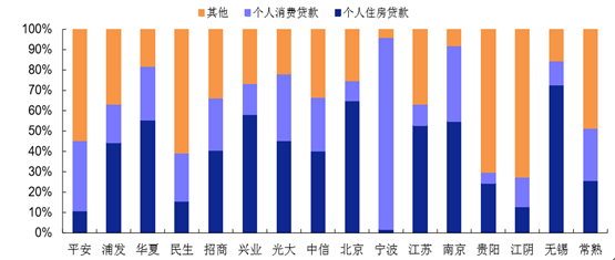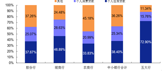 2015 年各類上市銀行個(gè)人貸款結(jié)構(gòu)對(duì)比