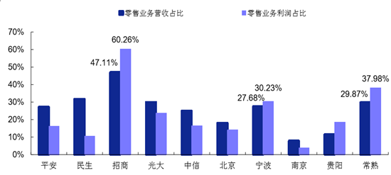 各類上市銀行零售業(yè)務(wù)利潤(rùn)占比