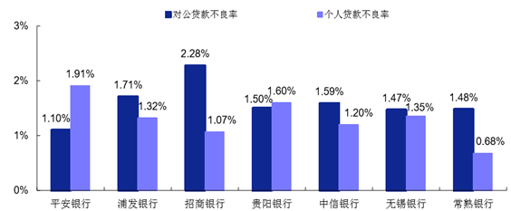 從部分中小銀行披露的數(shù)據(jù)來看,個(gè)人貸款的資產(chǎn)質(zhì)量整體優(yōu)于對(duì) 公貸款。招商銀行對(duì)公不良率達(dá)到 2.28%,但個(gè)人貸款不良率只有 1.07%,降低了銀行整體 的不良風(fēng)險(xiǎn)。目前,受市場(chǎng)環(huán)境的影響,個(gè)人經(jīng)營(yíng)性貸款的不良率偏高,消費(fèi)貸款 不良率也在逐年上升;由于房?jī)r(jià)還維持著上漲的趨勢(shì),上市中小銀行住房貸款不良率維持在 0.5%以下,但隨著房?jī)r(jià)已升至相對(duì)高位和樓市調(diào)控預(yù)期升溫,住房貸款存在一定風(fēng)險(xiǎn)隱憂,值得警惕。