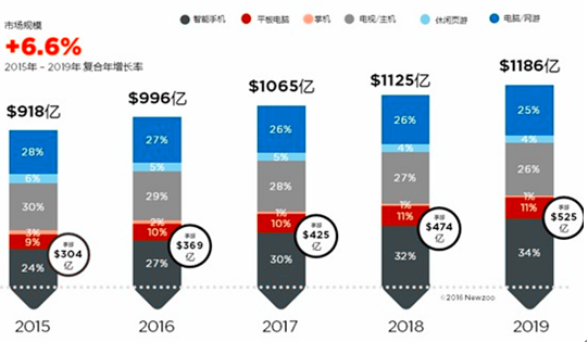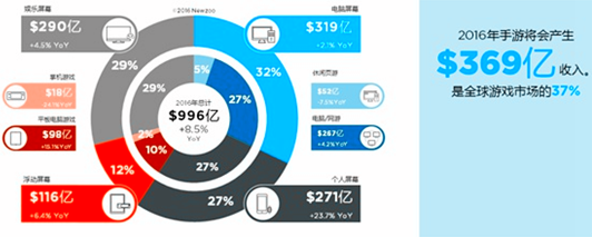 2016年全球手游市場(chǎng)規(guī)模及移動(dòng)游戲收入情況分析