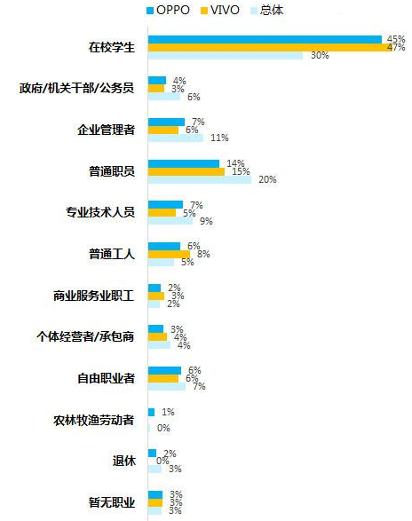 安卓品牌OPPO、VIVO用戶職業情況分析