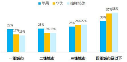各線城市蘋果、華為用戶占比