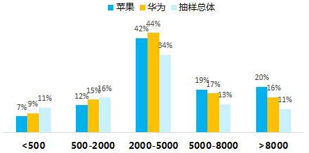 蘋果、華為用戶月收入情況占比