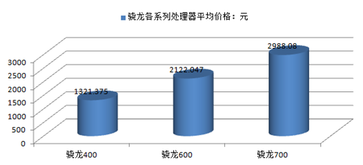 價 格方面驍龍400處理器手機均價為1321元,驍龍600處理器手機平均值已經突破2000元,高端的驍龍800系列則接近2988元,這與國內動則 1999元起買驍龍820的印象不同的原因有二,國際品牌驍龍820手機拉升了產品均價,另一方面各個手機的旗艦版大容量版本也是提升均價的主要因素。