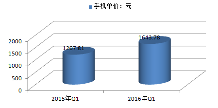 2015年Q1手機單價為1207元,一年之后2016年Q1手機平均價格提升至1643元,同比提升36%,用戶購買手機的平均花費增長了400多元。