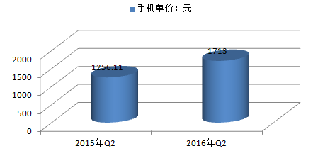 第二季度,2015年用戶買手機平均價格為1256元,2016年單品價格也提升到了1713元,兩者相差457元,價格同比提升36%。從多個維度的比較可以看出,智能手機單價已經出現較大幅度增長,符合我們對市場的感知。