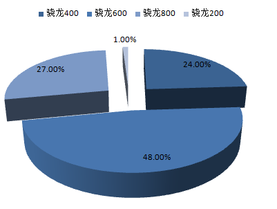 在上市的98款驍龍處理器智能手機中,驍龍600系列處理器(驍龍615、MSM8939、616、617、620、625、MSM8976、MSM8952、650、652)成為高通重推的產品,占據高通處理器48%的份額,驍龍615和驍龍652成為廠商最熱衷的兩款,尤其是驍龍652在性能表現直逼驍龍800,更是在2000元以上的市場上比較活躍。今年驍龍800系列(驍龍805、808、810、820、821)幾乎是驍龍820的天下,共有超過20款旗艦手機搶發驍龍820,占領高端市場先機。低端的驍龍400系列(驍龍400、MSM8929、410、MSM8916、425、430、MSM8937)主要集中在千元機市場,從今年的勢頭來看,驍龍400的規模逐漸縮小,轉投智能穿戴,驍龍200則幾乎徹底脫離手機市場。