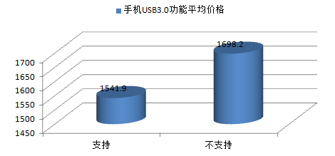 雖然目前市場上對手機USB3.0功能的評價有褒有貶,但該功能還是在一定程度上方便了用戶。從均價來看,支持USB3.0功能的手機均價為1541.90元,較不支持USB3.0功能的手機均價還要低150元左右。