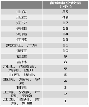 2015年中國各省市留學中介機構數量統(tǒng)計