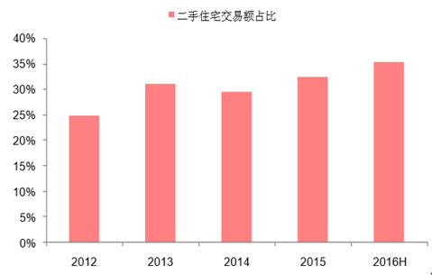 相較新房,存量房市場仍有較大發展空間,根據統計的 16 個重點城市二手房成交數據顯示,16 年上 半年重點城市二手房成交占比達到 45%,其中一線占比 61%,二線占比 37%。而且目前各個城市的流通率相比發達國際還處于底部,存量市場未來是房地產更大的舞臺。