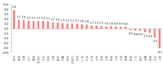 從進一步結構變化來看,老年人口占比提升對各個省市房地產需求帶來的影響更為明確,過去 10 年各個省市老年撫養比變化,其中上升幅度最大的十大省市分別為四川、山西、吉林、遼寧、湖南、 黑龍江、山東、重慶和甘肅,東三省全部在列,四川省老年人口占比提升幅度最大。而下降最為明顯的是上海、 北京、福建、西藏、浙江、廣東、海南、新疆、天津和寧夏,北上津以及廣東的老年撫養比下降幅度最為明顯, 凸顯了這些省市持續的人口競爭力。