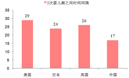 主要經濟體嬰兒潮和回聲潮之間間隔比較