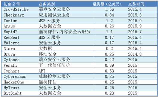 2015 安全行業初創公司重要融資一覽:云安全融資案例占多數