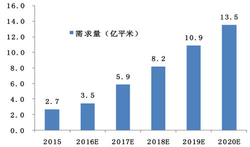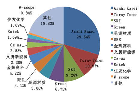 隔膜產品的性能由基體材 料和生產工藝共同決定,基材性能高低是決定隔膜產品性能的基礎,決定了隔膜的電子絕 緣性、化學穩定性、拉伸強度和收縮率等;而生產工藝決定了孔徑、孔隙率、浸潤性和厚 度等參數。隔膜專用的基材和生產設備的核心技術基本上都被旭化成、東燃化學、Celgard 等企業壟斷,目前國內隔膜的生產設備和基材依賴國外的現狀仍然沒有得到改變。按照 1GWh 鋰電需要 0.18 億平米隔膜, 平均市場價格 5 元/平米估算出,“十三五”期間國內動力鋰電對隔膜的增量需求合計為 42 萬平米,對應的市場規模為 210 億元。