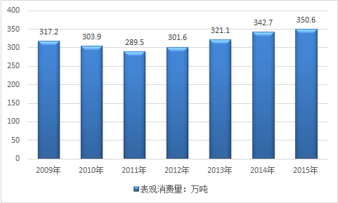 2009-2015年中國中藥材消費量走勢圖