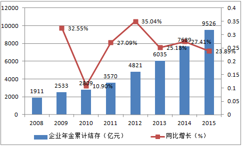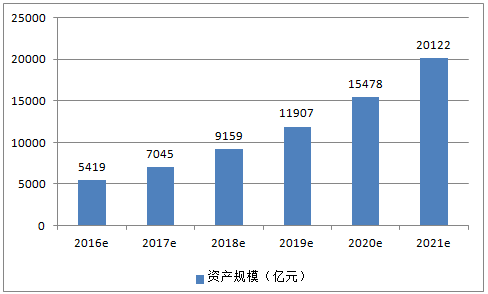 近年來,我國專業養老保險公司企業年金托管資產規模穩定增長,且增速均保持在24%以上,2015年我國專業養老保險公司增速為31.93%。若按照30%的速度增長,則2016年我國專業養老保險公司企業年金托管資產規模達到5419億元左右,2021年預計達到2.01萬億元。