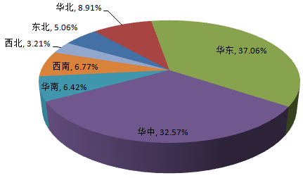 從我國(guó)烘焙食品行業(yè)市場(chǎng)規(guī)模區(qū)域分布情況來(lái)看,行業(yè)市場(chǎng)規(guī)模主要集中在華東和華中地區(qū),兩塊區(qū)域占比接近70%,而其余地區(qū)市場(chǎng)規(guī)模較小,占比均不足10%。