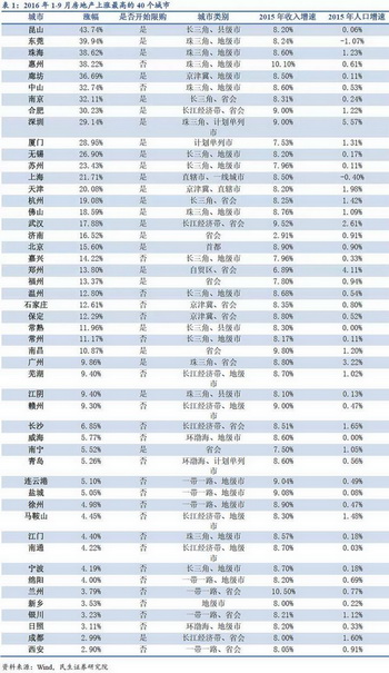 2015年全國(guó)城鎮(zhèn)居民可支配收入增速為8.2%,房?jī)r(jià)上漲前50名的城市其居民可支配收入均在7%至10%的區(qū)間內(nèi),有32個(gè)城市的房?jī)r(jià)增速超過了所在地城鎮(zhèn)居民可支配收入增速。人口增速多數(shù)都在0%至1%之間,上海甚至出現(xiàn)了常住人口負(fù)增長(zhǎng)。