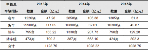 近三年,鐵總每年車輛采購金額均在1000 億元以上