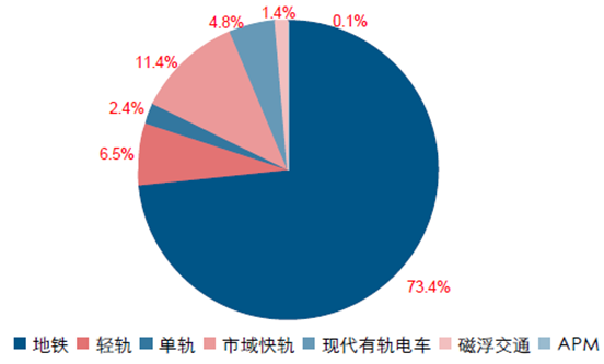 截至2015 年末,地鐵在7 種城軌制式中仍占據絕對主導地位