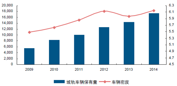 2010 年之后,城市軌道交通車輛密度整體逐步提升