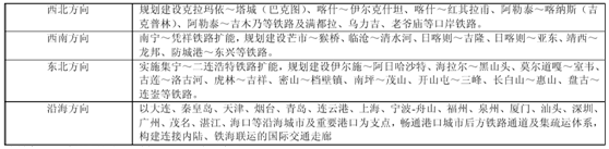 “十三五”期間,我國繼續(xù)推進(jìn)與周邊互聯(lián)互通,完善口岸配套設(shè)施,強(qiáng)化沿海港 口后方通道。規(guī)劃形成西南、西北、東北、沿海方向四個(gè)通道。其中,西北方向 涉及新疆等地,西南方向涉及新疆、南寧等地,東北方向涉及內(nèi)蒙古、黑龍江、 吉林等地,沿海方向涉及遼寧、河北、天津、山東、江蘇、上海、寧波、福建、 廣東、海南等地。