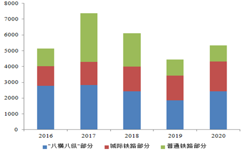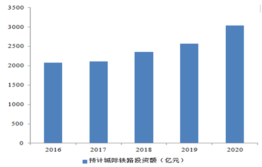 2016-2020 普通鐵路預(yù)計(jì)投資額(億元)