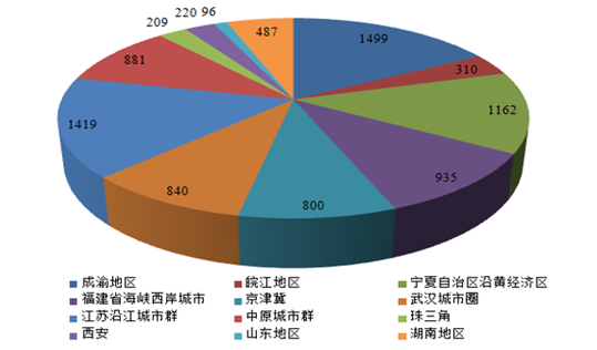 十三五期間預(yù)計(jì)城鐵各區(qū)域建設(shè)里程(公里)