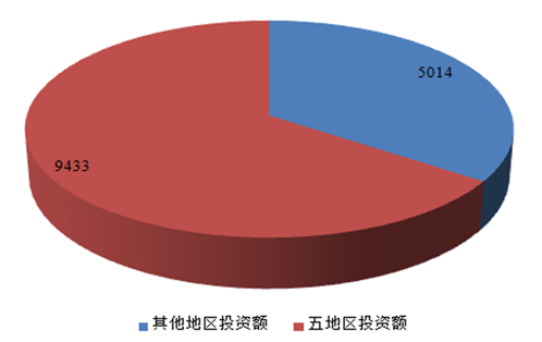 十三五期間預(yù)計(jì)城鐵各區(qū)域投資額(億元)