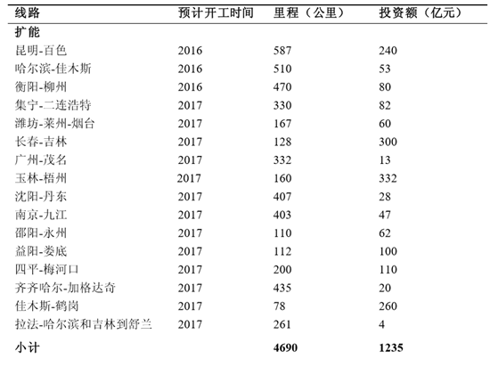 “十三五”期間普通鐵路規(guī)劃情況(2016-2018)