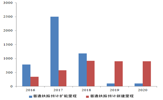 2016-2020 普通鐵路預(yù)計(jì)建設(shè)里程(公里)