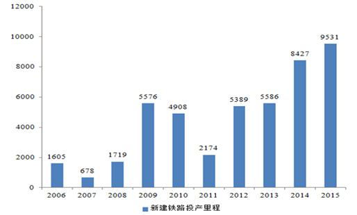 2006-2015 新增鐵路里程(公里)