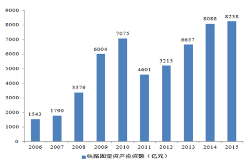 2006-2015 鐵路固定資產(chǎn)投資(億元)