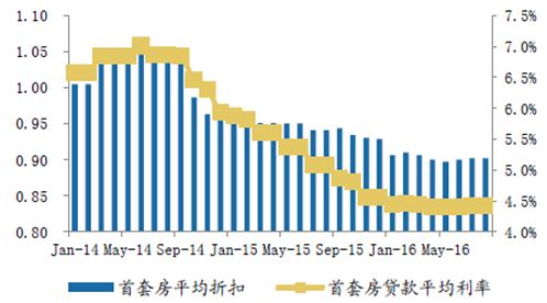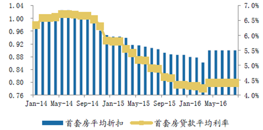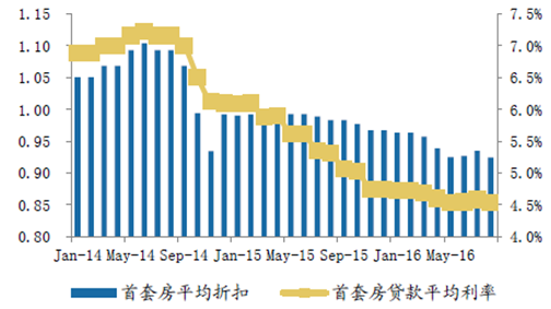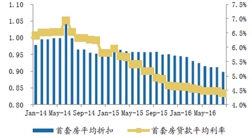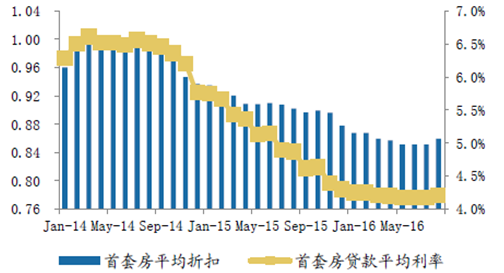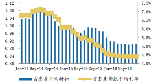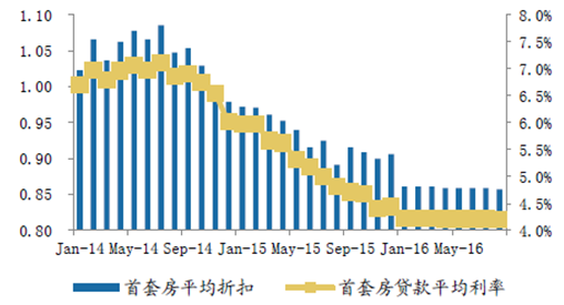 2016年中國(guó)房地產(chǎn)按揭貸款平均利率、平均折扣及房企每月發(fā)債規(guī)模