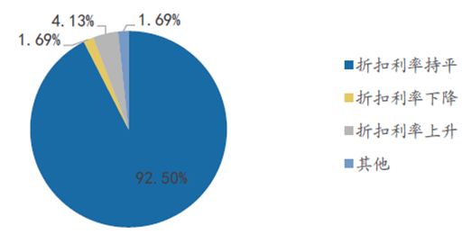 從銀行首套房折扣利率的變化趨勢(shì)來(lái)看,在全國(guó)35個(gè)城市的533家銀行中,本月折扣利率變化較小,大部分銀行折扣利率與上月持平,共493家,環(huán)比上個(gè)月增加了6家,占比約為92.50%。與上個(gè)月相比提升首套房折扣利率的共有22家,環(huán)比增加6家,占比為4.13%;9家銀行下調(diào)折扣利率,與上月持平,占比約1.69%;此外暫停房貸業(yè)務(wù)的銀行有9家,環(huán)比上月增加1家。從具體的利率分布來(lái)看, 533家銀行中提供優(yōu)惠利率的銀行有459家,環(huán)比上月增加了1家,占比86.1%,較上月微增0.04個(gè)百分點(diǎn),再創(chuàng)歷史新高。其中有156家銀行提供9折以下優(yōu)惠利率,環(huán)比上月微增1家,占比29.27%。而在提供9折以下優(yōu)惠利率的銀行中,提供8.5折優(yōu)惠利率的銀行數(shù)量環(huán)比上月持平,依舊為125家。此外,提供9折優(yōu)惠的銀行有223家,環(huán)比上月增加11家,占比41.8%。