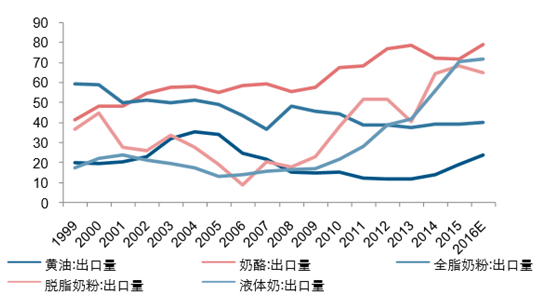 2016年全球主要國家乳制品價格走勢及出口產量情況分析