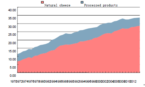 核心提示:20世紀(jì)上半期,美國的奶酪消費(fèi)水平并不高。1970年代以來,由于人口增長、生活和工作模式變化,美國人對便利快餐如三明治、披薩、意面等需求快速增長,進(jìn)而推動(dòng)奶酪消費(fèi)快速增長。據(jù)統(tǒng)計(jì),目前美國大約有60%的奶酪提供給食品工廠、再制成含奶酪食品出20世紀(jì)上半期,美國的奶酪消費(fèi)水平并不高。1970年代以來,由于人口增長、生活和工作模式變化,美國人對便利快餐如三明治、披薩、意面等需求快速增長,進(jìn)而推動(dòng)奶酪消費(fèi)快速增長。據(jù)統(tǒng)計(jì),目前美國大約有60%的奶酪提供給食品工廠、再制成含奶酪食品出售。在該背景下,從上世紀(jì)70年代到2015年,美國國內(nèi)奶酪的總消費(fèi)量增長了5倍左右,人均消費(fèi)水平從5kg左右提升至16kg左右。