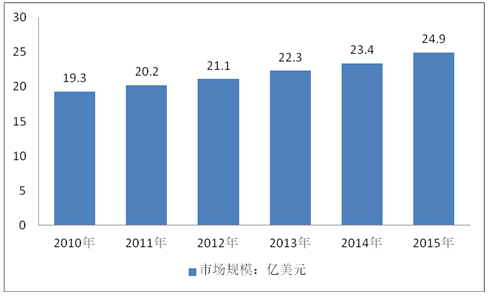 中經先略數據中心發布的《2016-2022年中國煙草薄片(再造煙葉)行業分析及投資前景分析報告》顯示,2010年全球煙草薄片市場規模19.3億美元,2013年增長至22.3億美元,2015年達到24.9億美元。