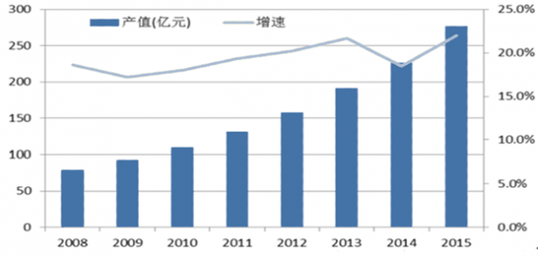 2015年國內信息安全產品市場增速較快,市場規模達到276.69億元,與2014年同比增長22%,高出全球平均增速近一倍。