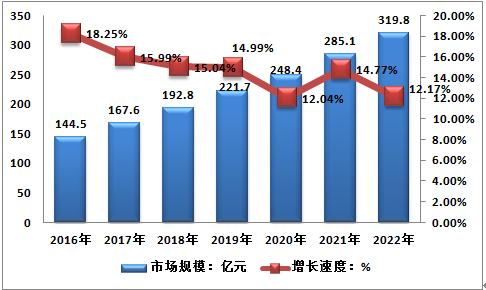 2016-2022年中國眼科器械行業(yè)市場規(guī)模及增速預測