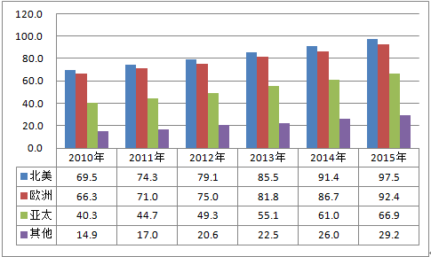 2010-2015年全球眼科器械市場主要地區分析:億美元